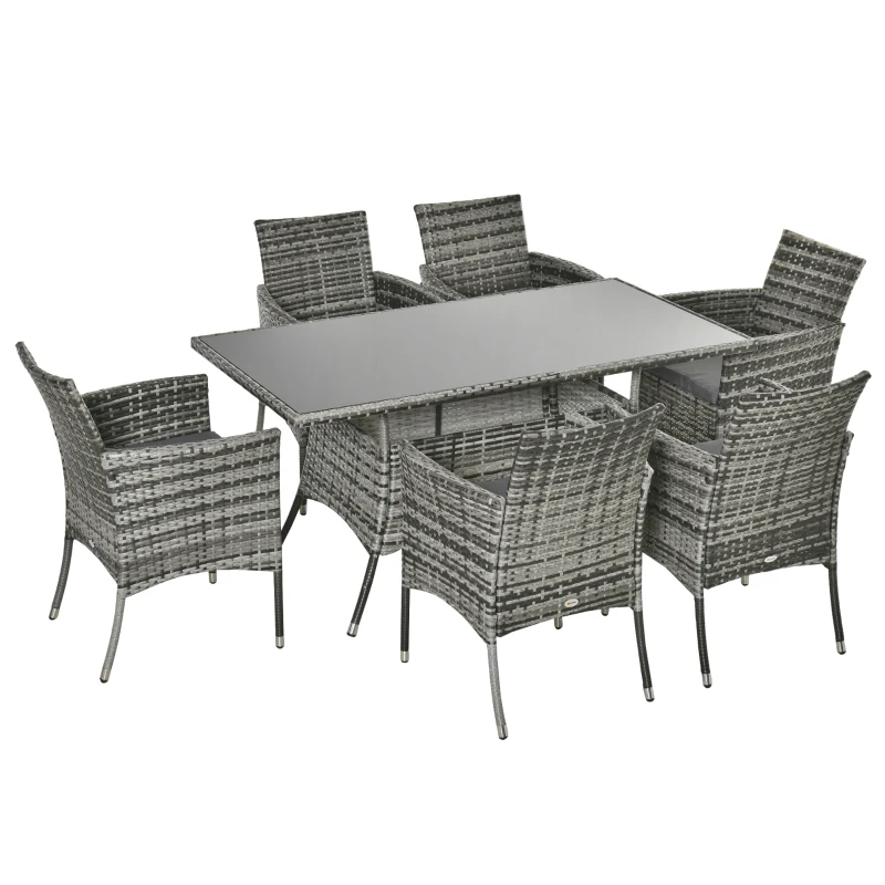 - Durable and Stylish: This seven-piece dining set features a metal frame wrapped in PE rattan, ensuring strength, UV resistance, and a chic look for your outdoor gatherings.