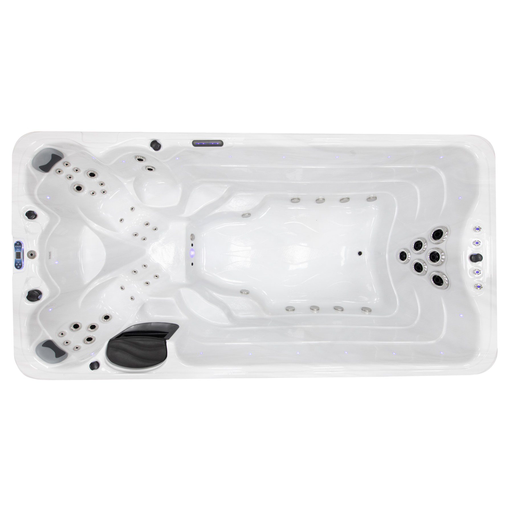 The Ares Swim Spa is a premium 4-person model that combines hydrotherapy, fitness, and luxury in one stunning unit. Perfect for low-impact aquatic workouts, recovery, or simply relaxing in style, the Ares delivers versatility and performance for both wellness and leisure.